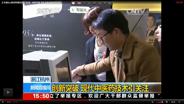 2015全國藥店年度峰會上我公司王總接受中央電視臺采訪,就目前中醫診療設備及中草藥現代化進程發表自己的見解。